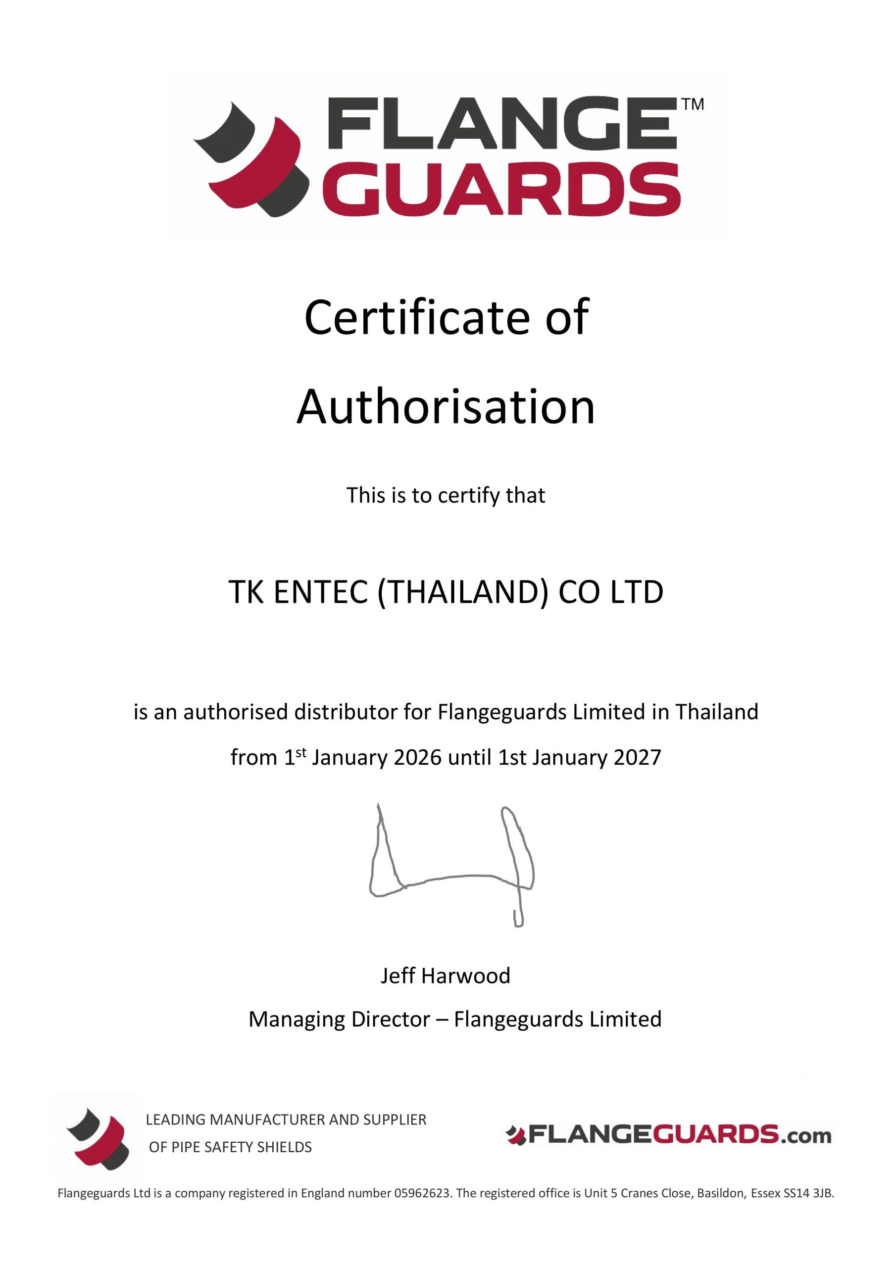Authorised Distributor Certificate – TK Entec (Thailand) Co Ltd