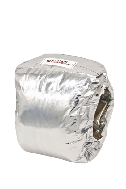 Standard HEATGUARDS for process, commercial and residential sites comprises Glass Fabric outer & inner, with central 50mm Mineral Fibre Insulation. Our clever yet simple Velcro and draw-cord design allows easy install & removal. Non-standard client requirements can be accommodated using different material combinations.